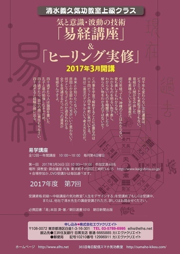 2017年度「易経講座」第7回【清水義久気功教室 上級クラス 気と意識・波動の技術】